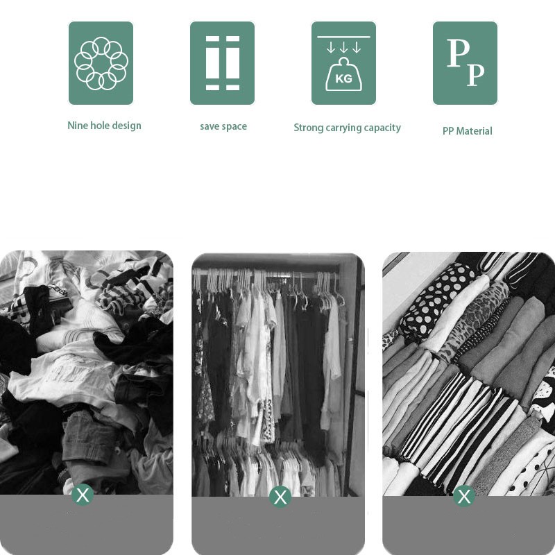 概要: 強力なpp素材、便利な9穴ブランチ、吊り下げヘッドは360度回転可能、水平と垂直の両方を使用可能、軽い保管と乾燥、家庭用のきちんとした服の手入れ