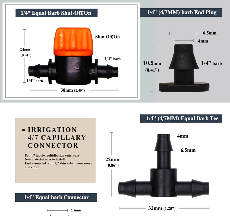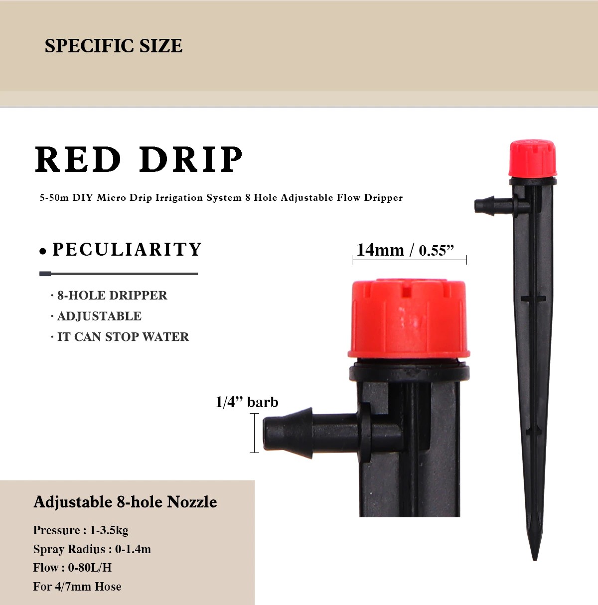 ☺のための適切な4/7ミリメートル (インナー/外径) チューブ。 各ドリッパーには、上部に8つの出口穴があり、360度の完全灌漑。