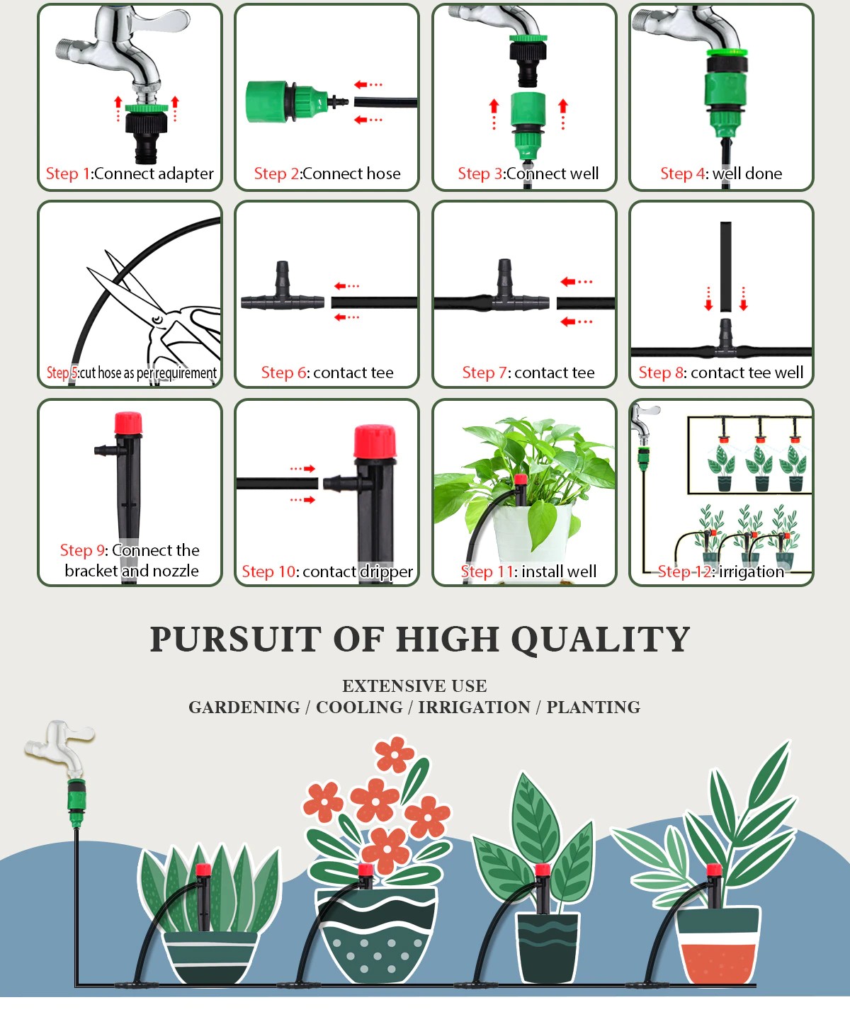 ☺適用範囲: ポット、浴槽、グランドカバー、造園された庭、花壇、菜園、ハーブガーデン、菜園、ハーブガーデン、芝生、温室、果樹園、芝生に適しています点滴灌漑システムなど。 ヒント: チューブとドリッパーを接続する前に、チューブの穴を温水で柔らかくします。