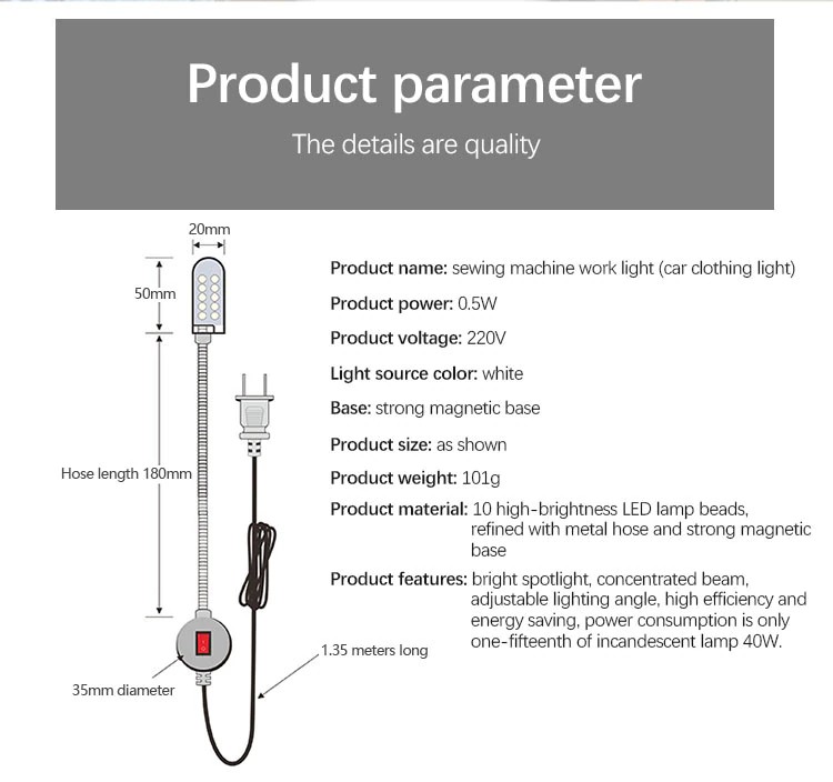 3.柔軟なネックにより、必要に応じて光を正確に調整できます。 ライトを希望の位置に簡単に設定できます。