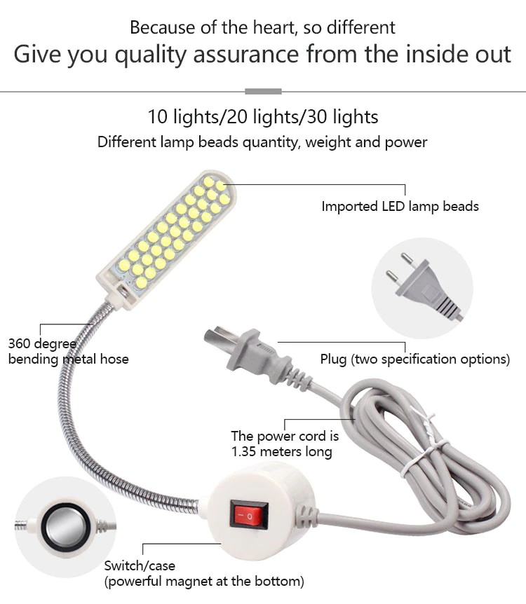 10/20/30 led工業用ミシン照明ランプ服機アクセサリーワークライト360 ° 柔軟なグースネック