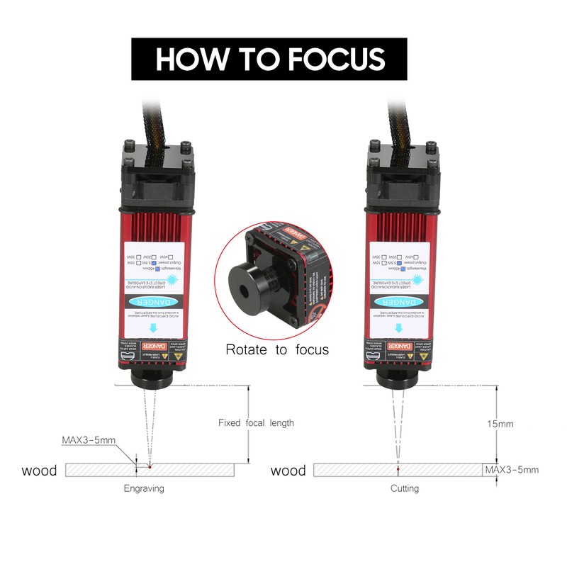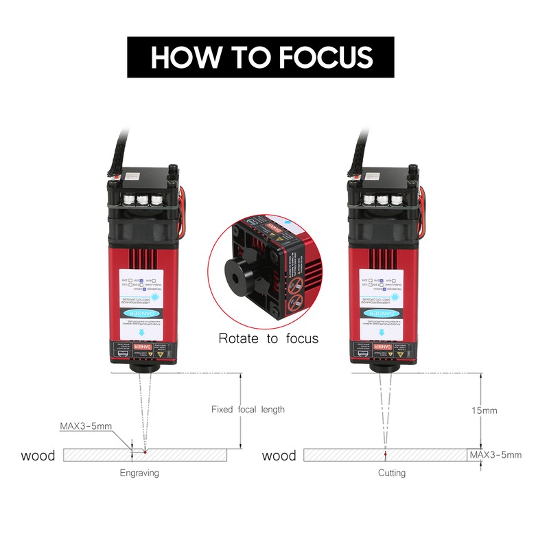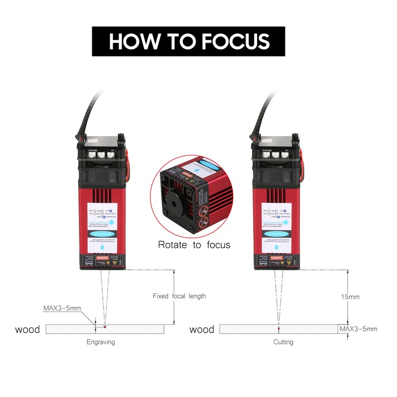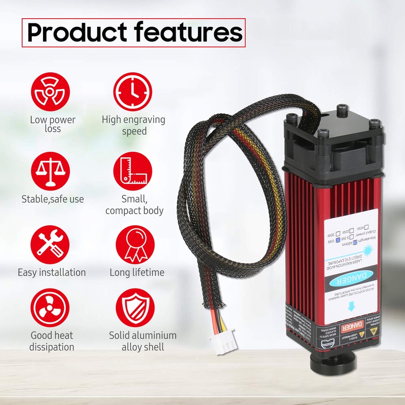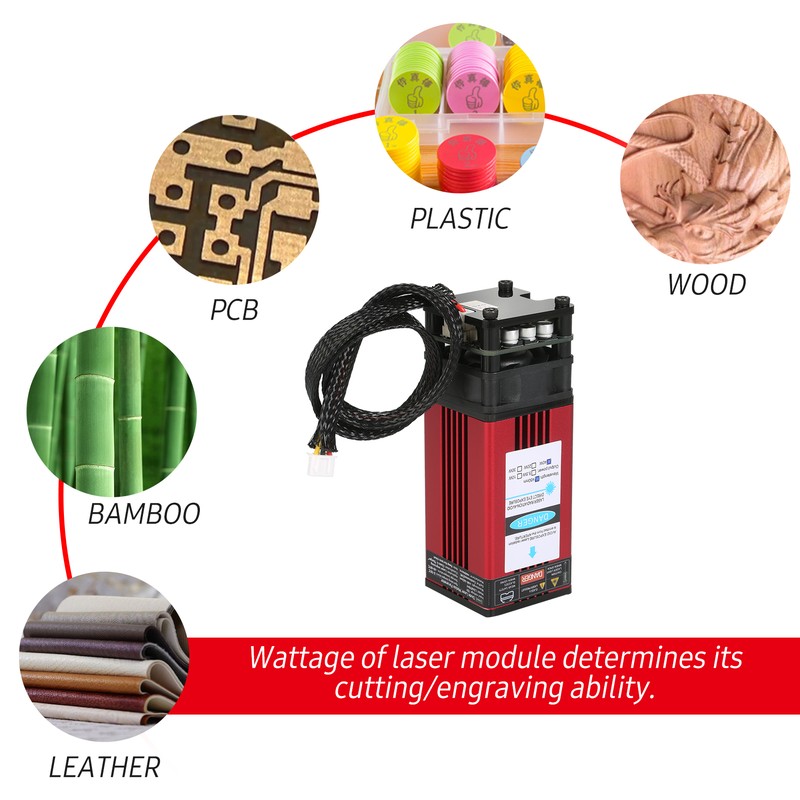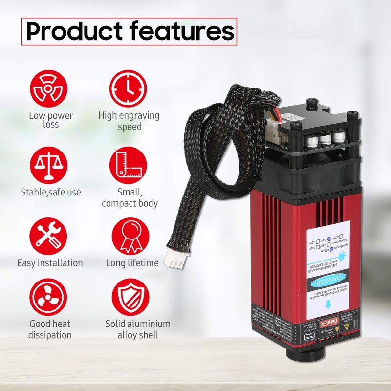 高品質素材:レーザーモジュールは、頑丈で耐久性のあるアルミニウム合金シェル、高い彫刻速度、低電力損失、安定性、長寿命を備えています。