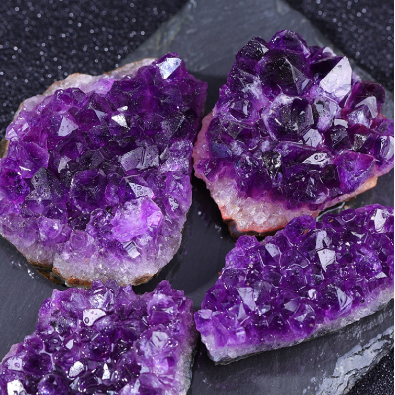 天然アメジストジオードクォーツクラスター,エネルギー回復のための結晶標本 (ベースなし)