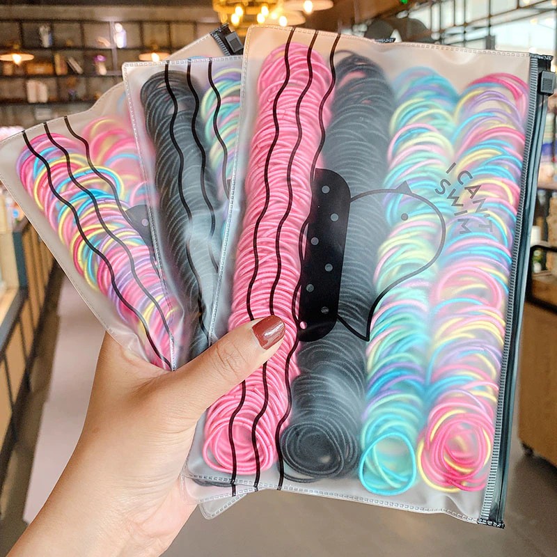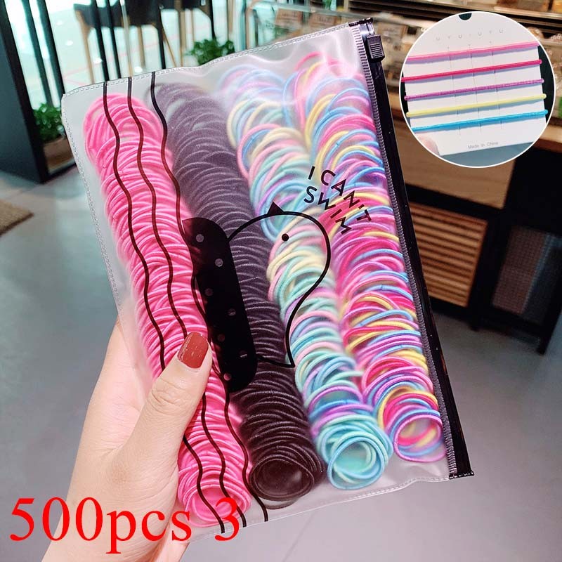 女の子のためのカラフルな弾性ヘアバンド,100/300/500ピース/バッグ3.0cm,基本的な輪ゴム,ポニーテールホルダー,子供のためのファッショナブルな輪ゴム,ヘアアクセサリー