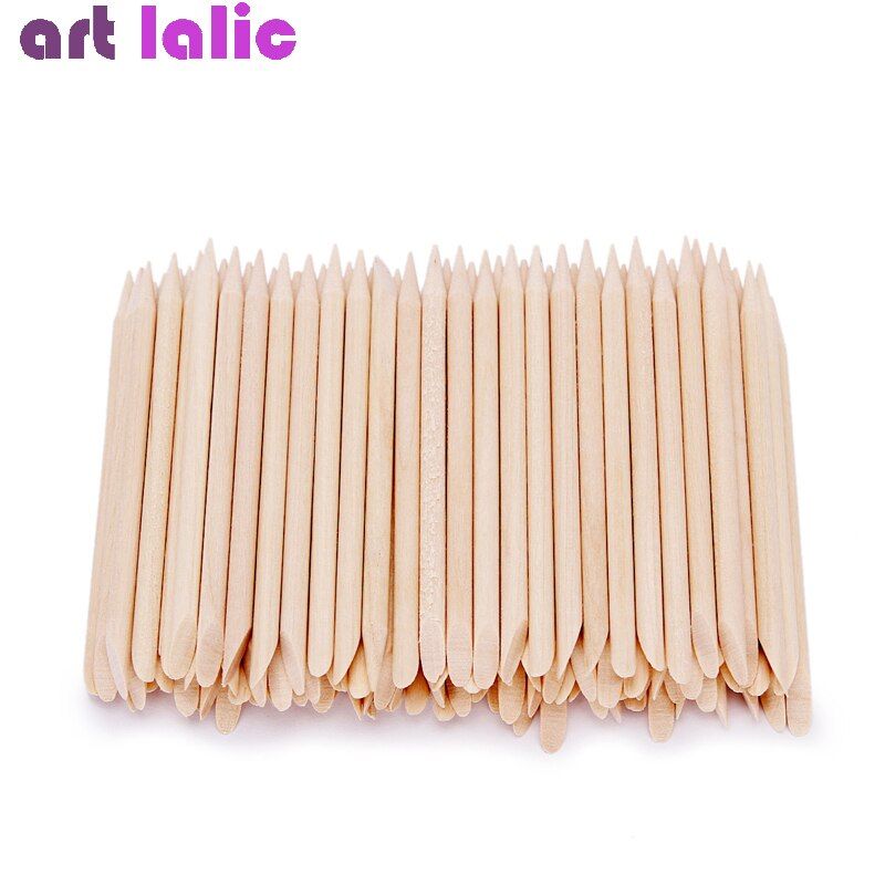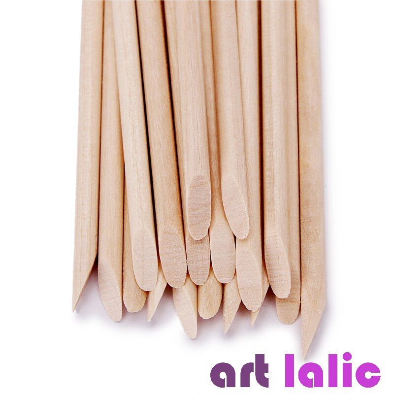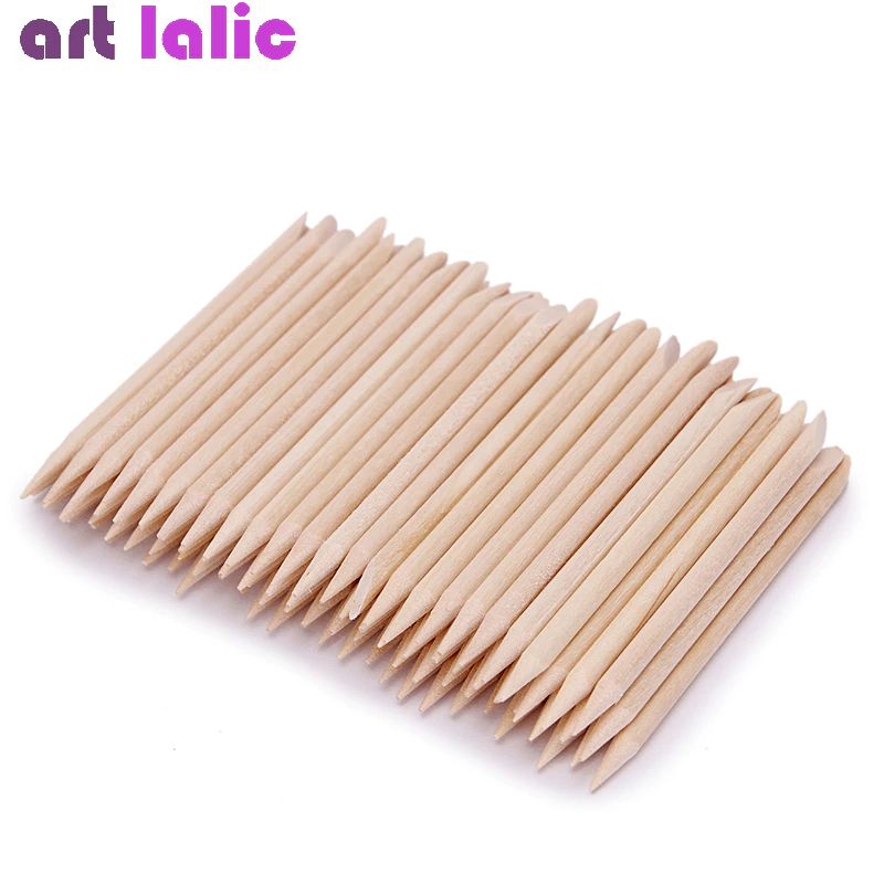 ネイルアート用のオレンジ色の木の棒,100個,キューティクルリムーバー,マニキュアケア
