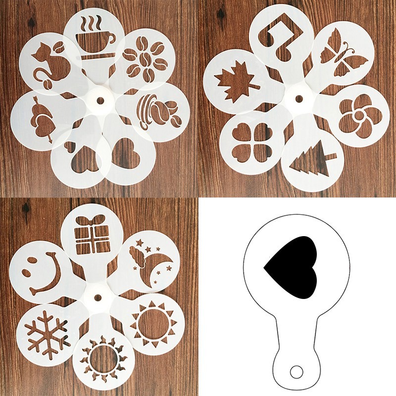 | コーヒー描画型ファンシーコーヒー印刷コーヒーフォームスプレーアートステンシルケーキステンシル粉末砂糖ふるいツール |