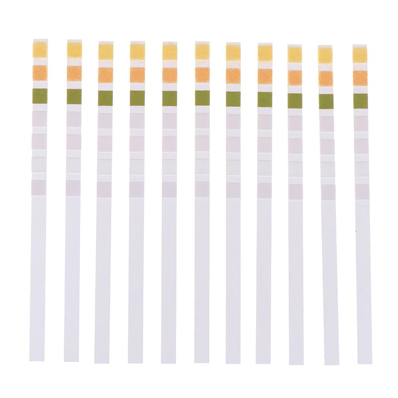 水族館や池にテストストリップを浸し、ストリップの色をコンテナのカラーチャートと比較します。