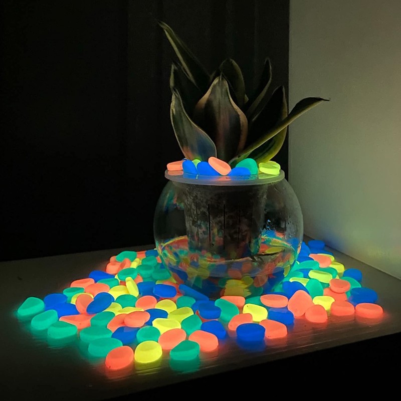 これらの輝く岩は、日光や他の光源からのエネルギーを吸収して貯蔵し、暗い環境で点灯します。 これらの輝く小石は、太陽の下で一日を過ごした後、暗闇の中で最大1〜2時間輝きます。これらの光沢のある石は日中は緑ですが、夜は青い小石の岩になります! 明るさが足りない場合は、再度光を当ててください。
