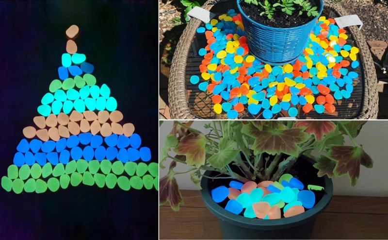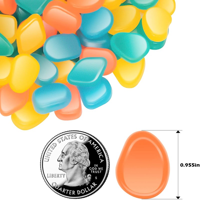 【暗闇で光る】これらの石は自分では輝きません。 ただし、これらの小石は日中は十分な日光を吸収し、夜間やその他の暗い環境で2〜3時間まで輝きます。 明るさが足りない場合は、再度光を当ててください。