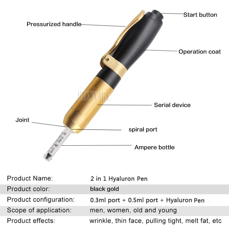2in 1メソインジェクションガンヒアルロンペン0.3ml & 0.5ゴールドヒアルロン酸ペンリップフィラーインジェクター非侵襲的ネブライザースキンケア