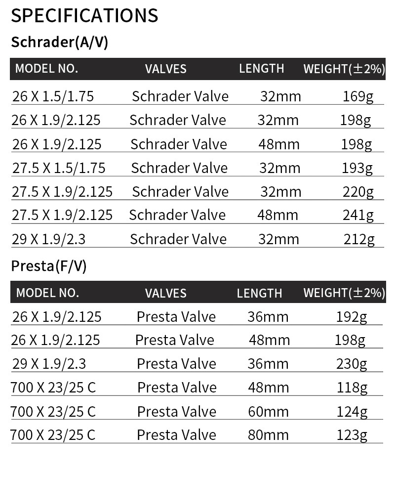 モデル4: 26x1 9/2。125-48l-av]; [モデル5: 26x1。5/1。75 av]; [モデル6: 27.5x1。9/2。125 av]; [モデル7: 26x1。9/2。125 fv]; [モデル8: 700x23/25c-48l-fv]; [モデル9: 26x1。9/2。125-48l-fv]; [モデル10: 700x23/25c-60l-fv] [モデル11: 700x23/25c-80l-fv]; [モデル12: 27.5x1。9/2。125-48L-AV]; [モデル13: 29x1.9/2.3 fv]