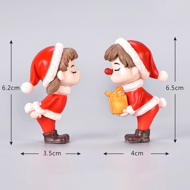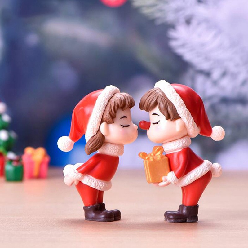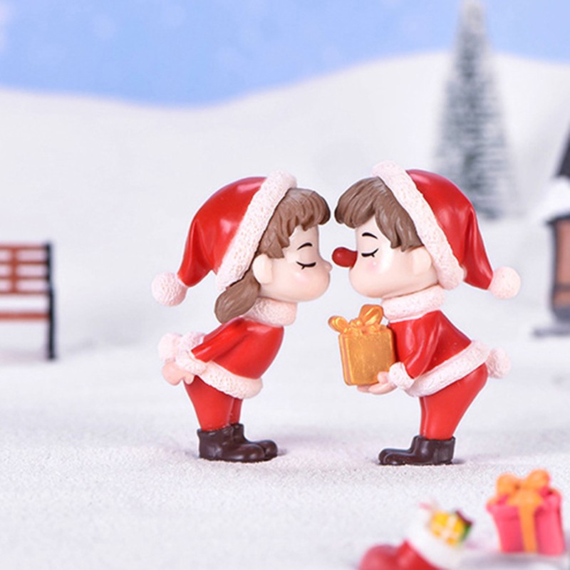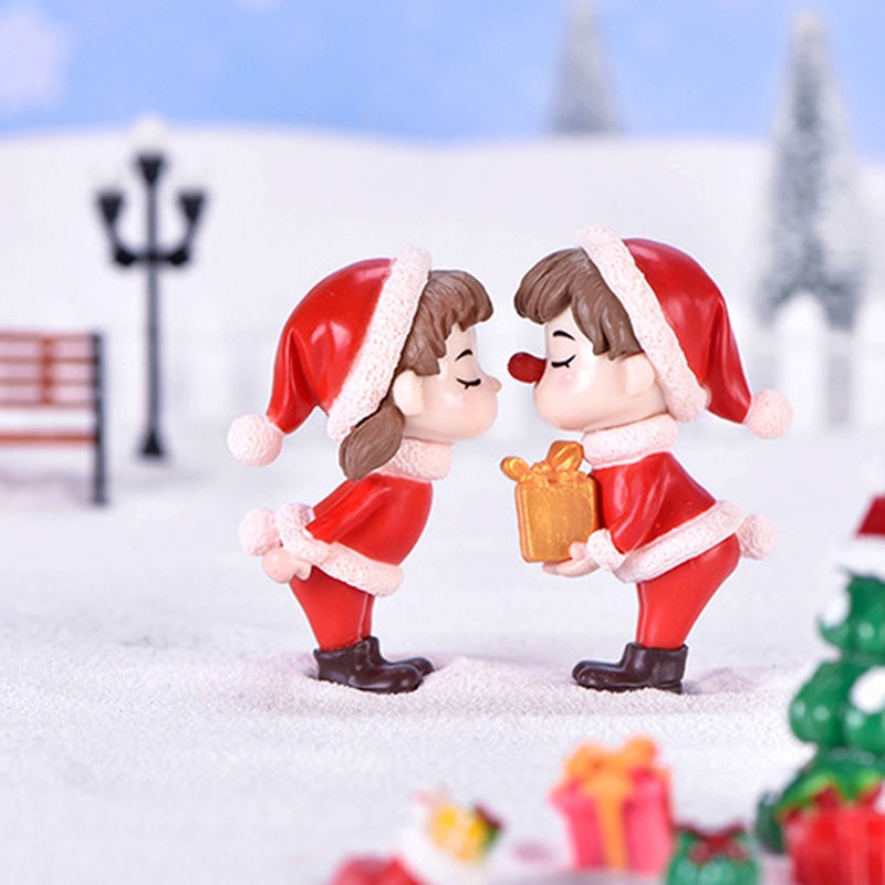 • クリスマスのカップルのためのミニチュアフィギュア, 2個, 手作りの庭の装飾人形 盆栽 子供のおもちゃ ミニチュアフィギュア, 樹脂像
