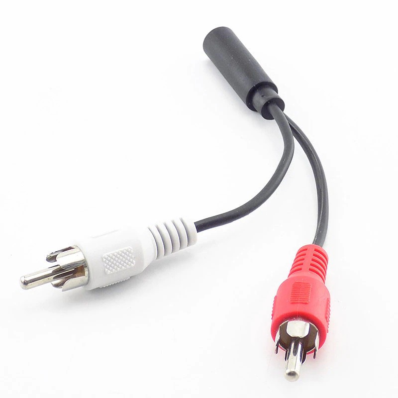 2 x rca "y" オーディオケーブルは、PCサウンドカード、ポータブルCDプレーヤー、MP-3プレーヤー、または3.5mmジャック付きのミニホームステレオオーディオソースをステレオレシーバーまたはマルチメディアスピーカーに接続します。
