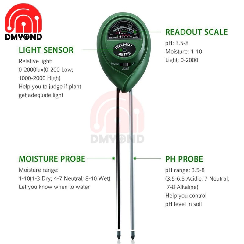 土壌水分センサーメーター:3インチ土壌pHメーター湿気光pHテスター