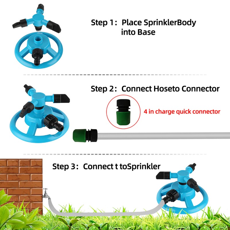 4。雨、要素、遊び心のある子供たちに耐えられるほど頑丈な、防錆ABSプラスチックで作られたプレミアムグレードのスプリンクラーは、芝生の巨大なエリアにスプレーできます。3つの360度回転アームを備えた庭と屋外のエリア。
