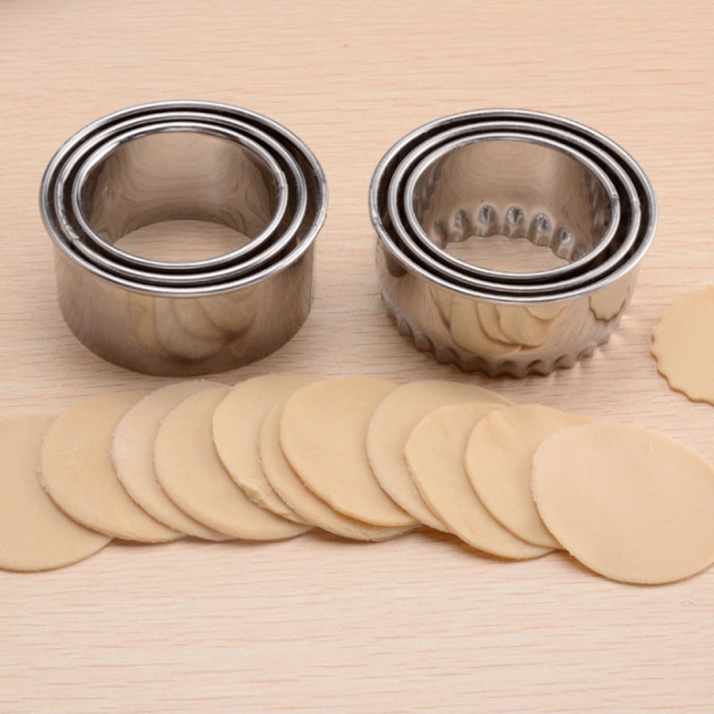 丸い/花の形をした生地切断ツール,キッチンガジェット,餃子カッター,ポータブル餃子包装機,ステンレス鋼型,3個