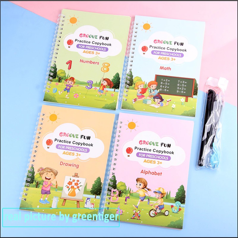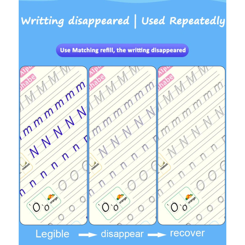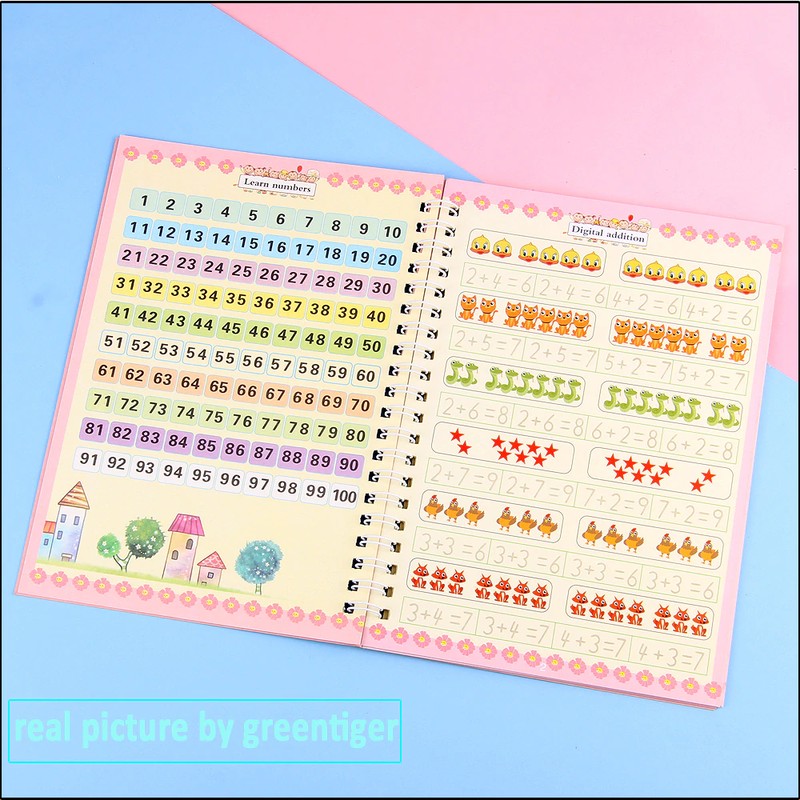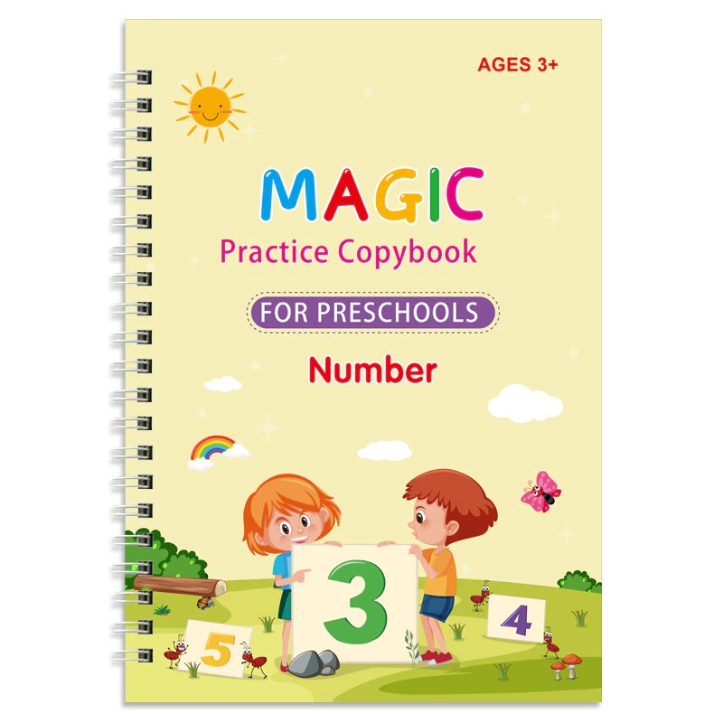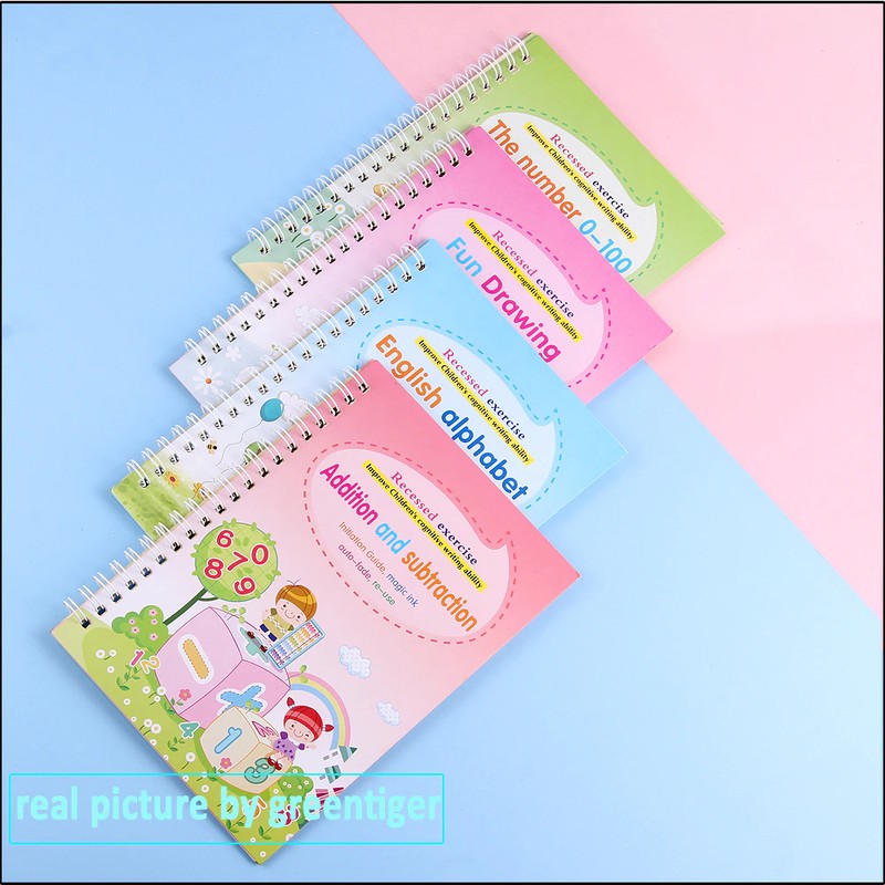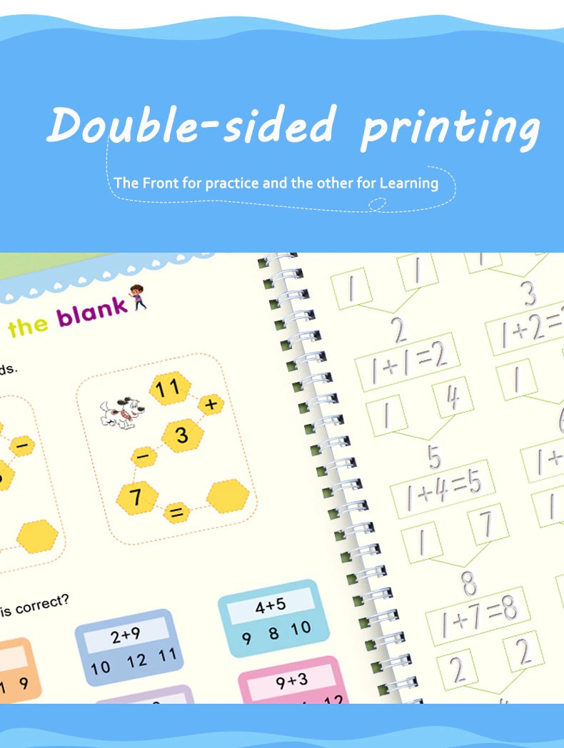 子供のための魔法の練習本,4つのコピーブック,再利用可能なステッカー,無料のワイプ,数学と英語の描画,子供のおもちゃ