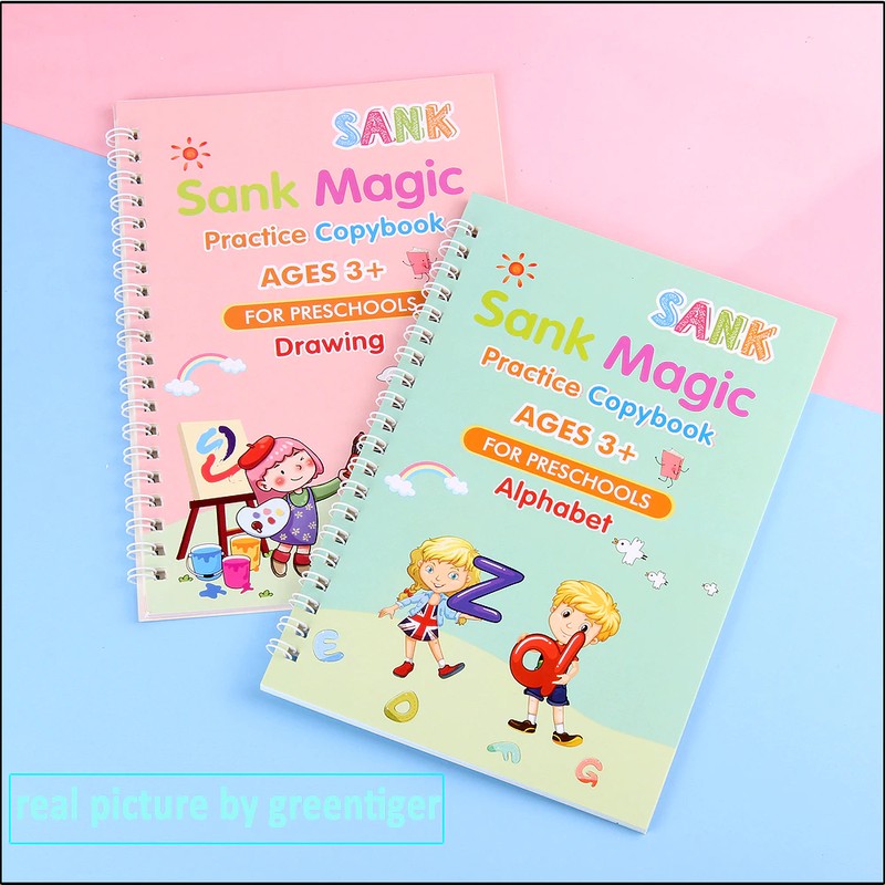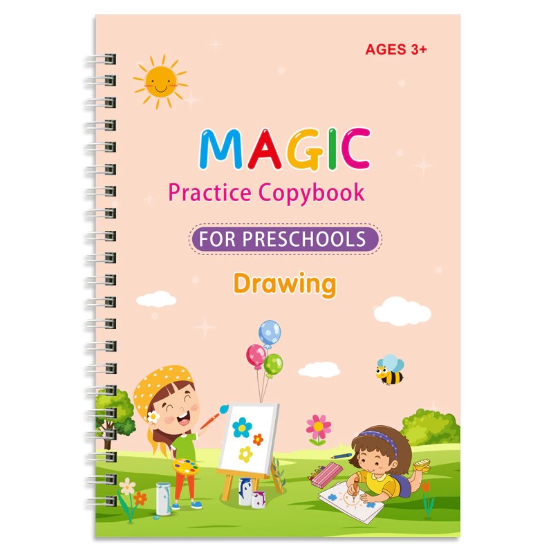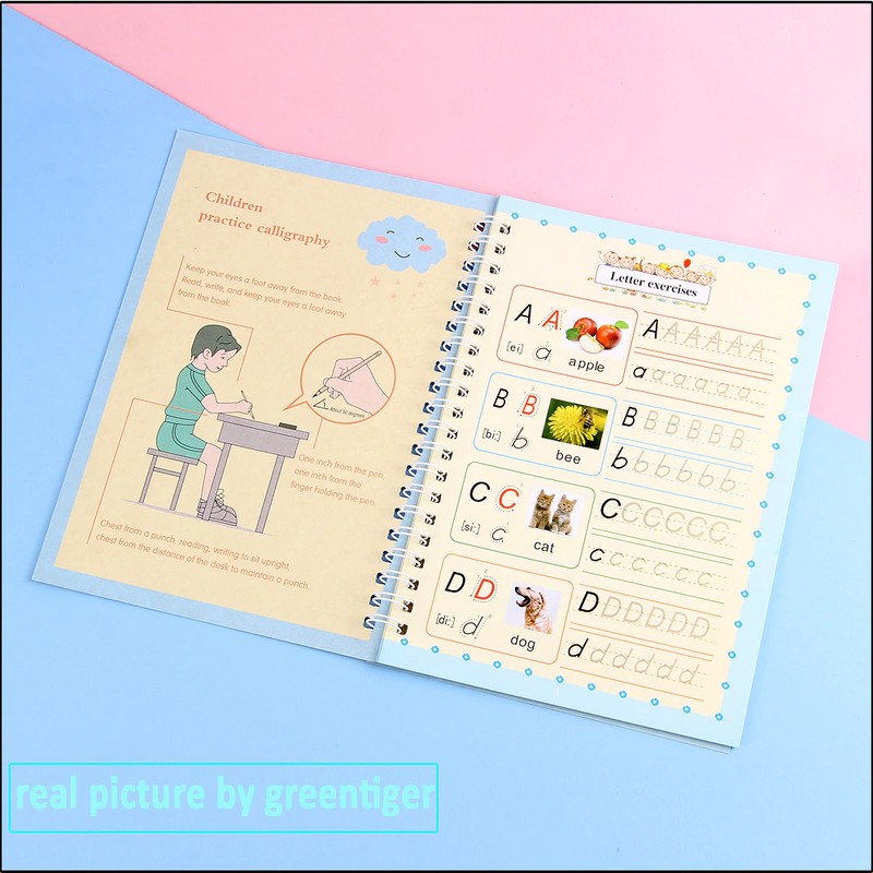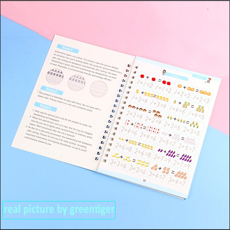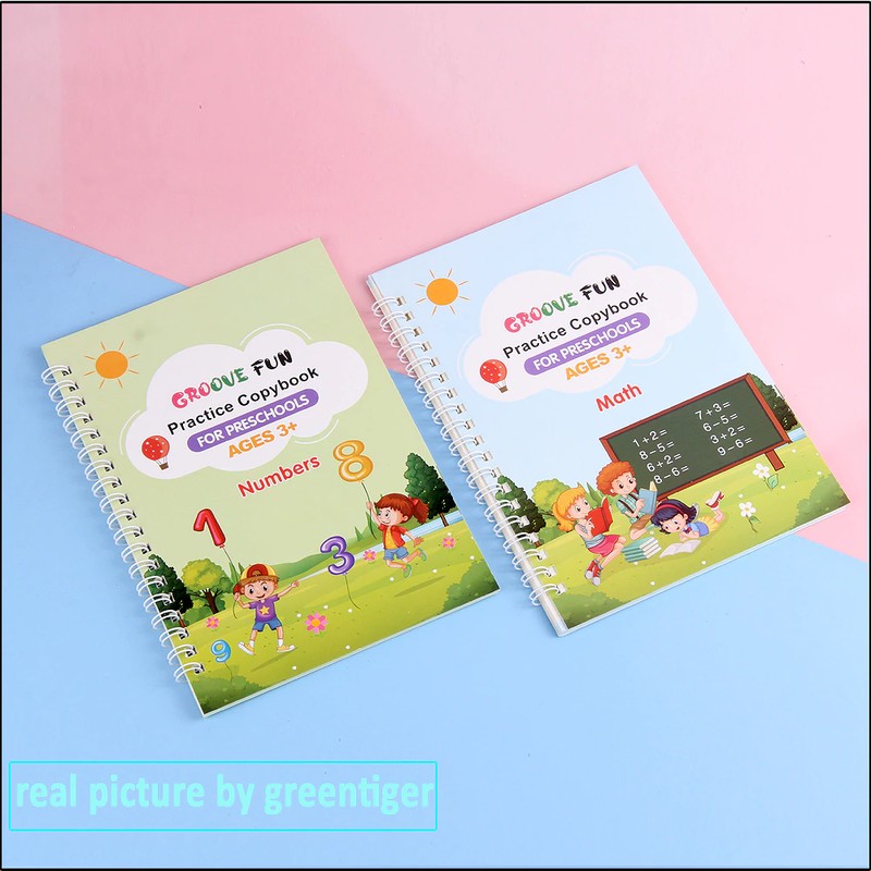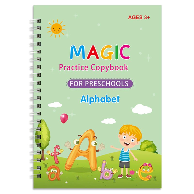 子供のための魔法の練習本,4つのコピーブック,再利用可能なステッカー,無料のワイプ,数学と英語の描画,子供のおもちゃ