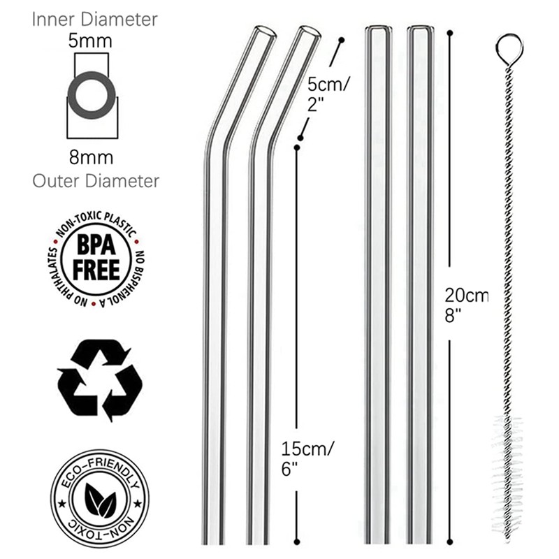 再利用可能で環境に優しい: 世界では、毎日1200万以上のプラスチックストローを使用しています。 プラスチックは生分解性ではありません。つまり、1938で製造されてから使用されているすべてのプラスチックストローはまだ何らかの形で存在し、有毒化学物質を水や土壌に浸透させています。 良いニュースは、ガラスストローに切り替える1人だけで、約38,000個の不快なプラスチックストローを環境から永遠に遠ざけることができるということです!