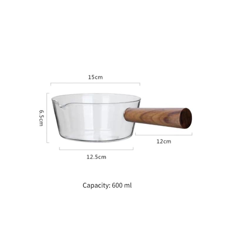 木製ハンドル付きガラス製ミルクポット,家庭用離乳食缶,ホットミルクヌードル,透明フルーツ鍋,400ml