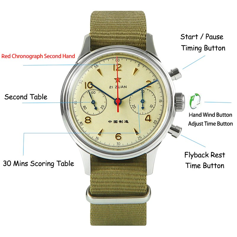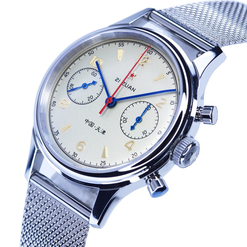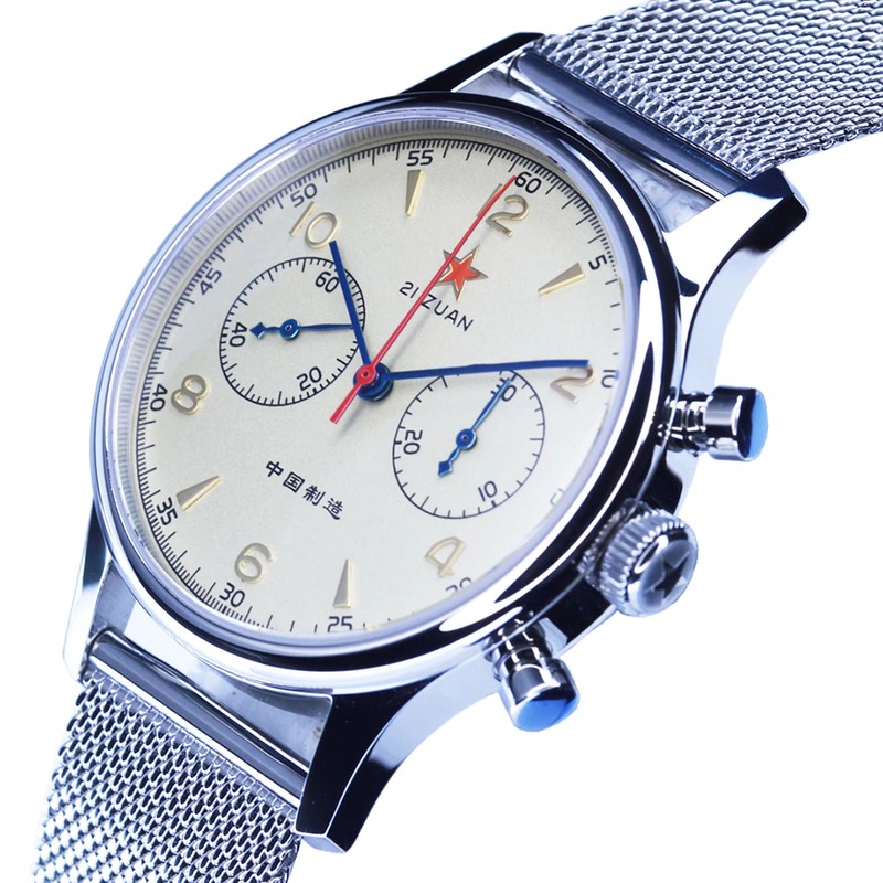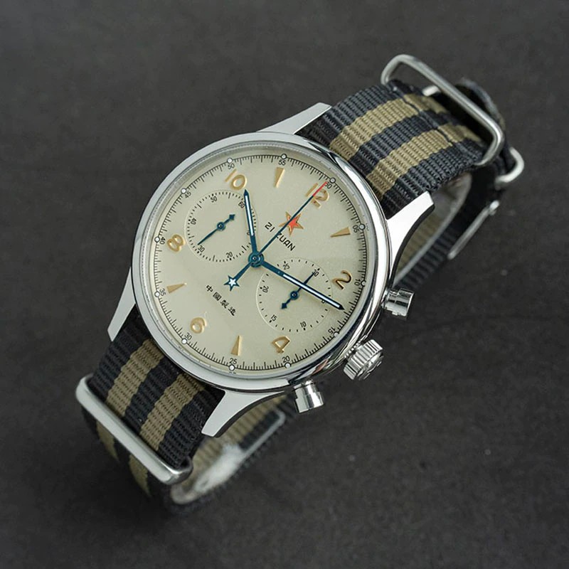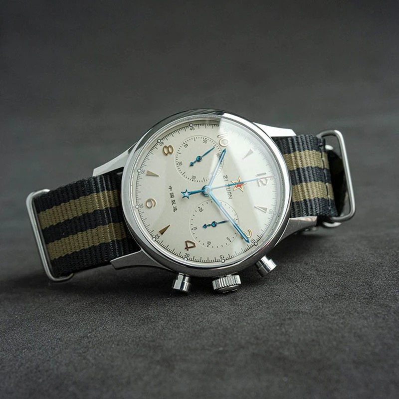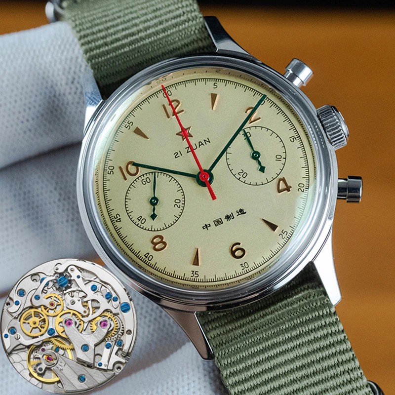 この製品はオリジナルのカモメst1901ムーブメントを使用しています。 カモメのムーブメント工場は、世界で4つの有名なムーブメント工場の1つです。 カモメのムーブメントの販売は、世界のムーブメントの販売の4分の1を占めています。 St1901ムーブメントは、正確なデザインと安定した移動時間を備えた非常に古典的なクロノグラフムーブメントです。 クラシックなムーブメントの代表であるヴィーナス175ムーブメントがそのプロトタイプとなっています。 Venus社は1924に設立され、1920s-1950sの市場で高い評価を得ています。