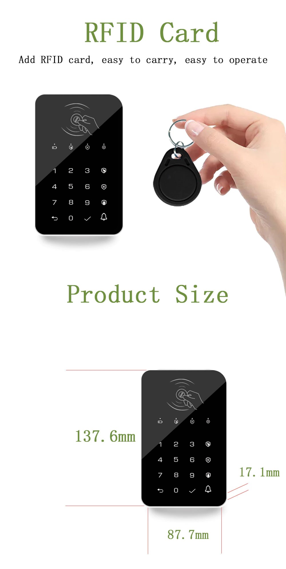 Earykong 433mhzワイヤレスキーボードタッチパッドドアベルボタンg50/g30/pg103/w2b wifigsmアラームrfidカード充電式
