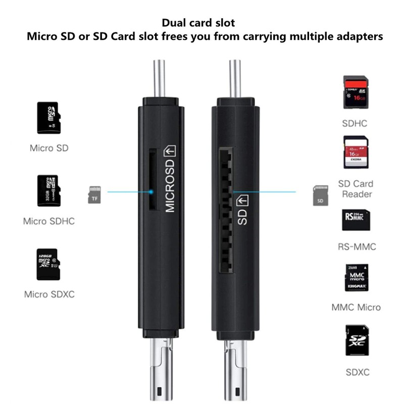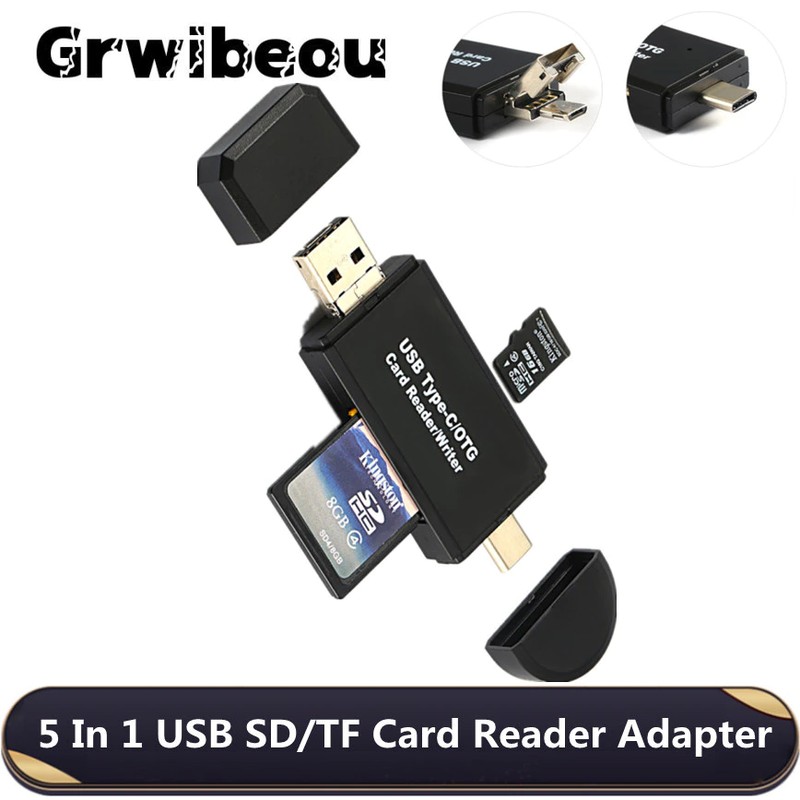 Grwibeou 5 1でusb 2.0 sdカードリーダーusb cカードリーダーtf/ミルコsdスマートメモリカードリーダータイプc otgフラッシュドライブカードリーダーアダプタ