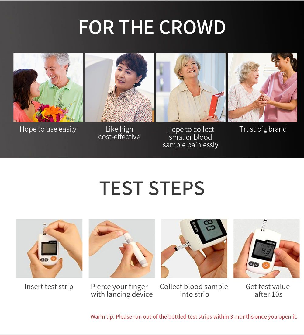 1、GA-3グルコメーターのみに匹敵します。 2、ボトル入りテストストリップを開封してから3ヶ月以内に使い切ってください。