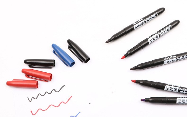 6ピース/セット永久マーカーペンプロファインポイント防水インク薄型先原油先黒、青、赤インク1.5ミリメートルファイン色マーカーペン