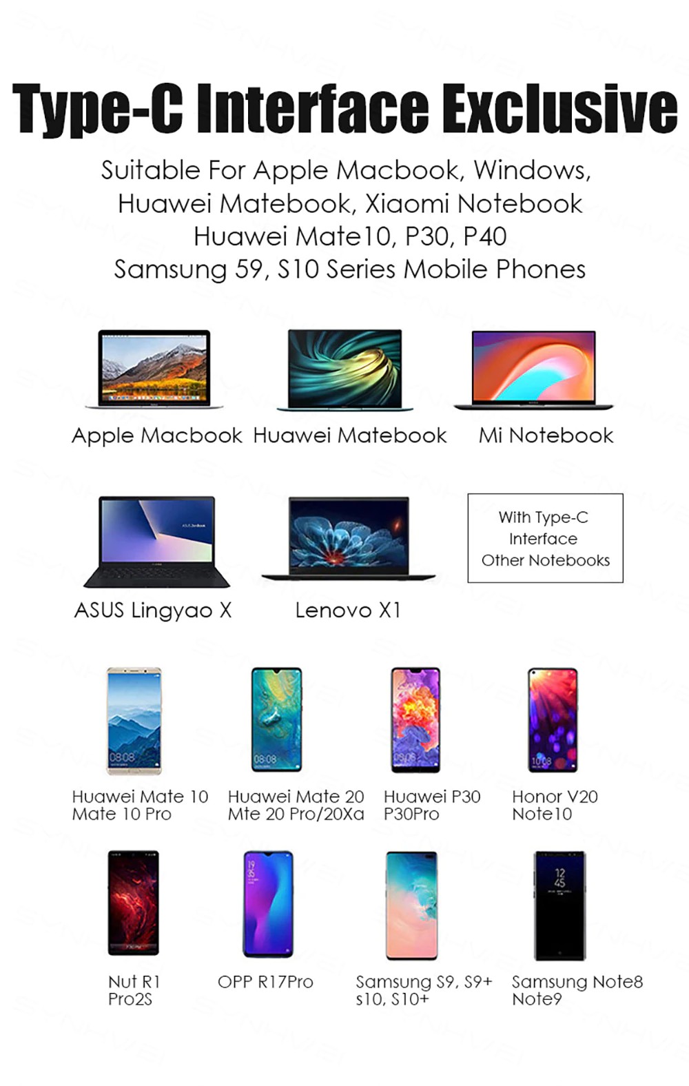 Apple Macbook,Huawei Matebook,Xiaomi Notebook,Type-Cインターフェイスを備えた他のラップトップに適しています
