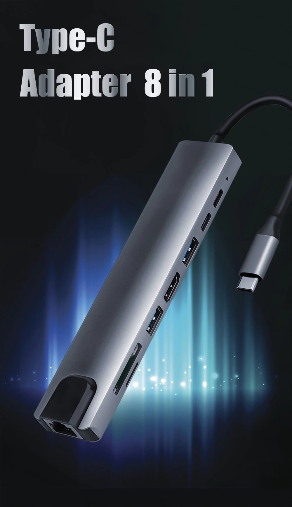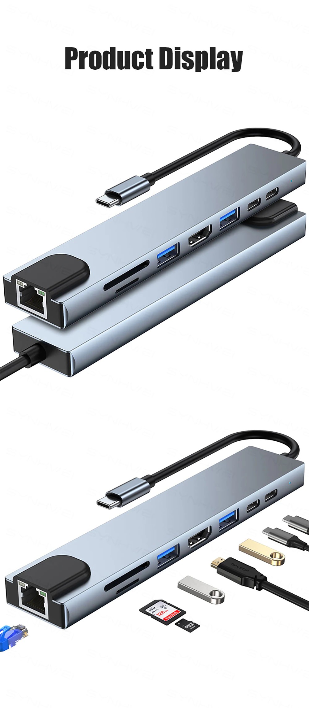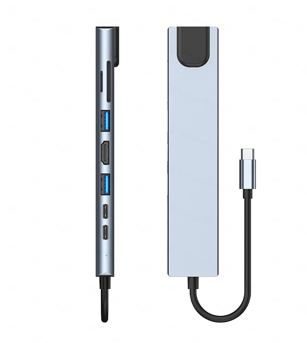 (6) 8-in-1 hdmiモデル + rj45: hdmi + usb3.0 * 1 + usb2.0 * 1 + pd充電 + tf + sd + rj45 + pdデータ転送