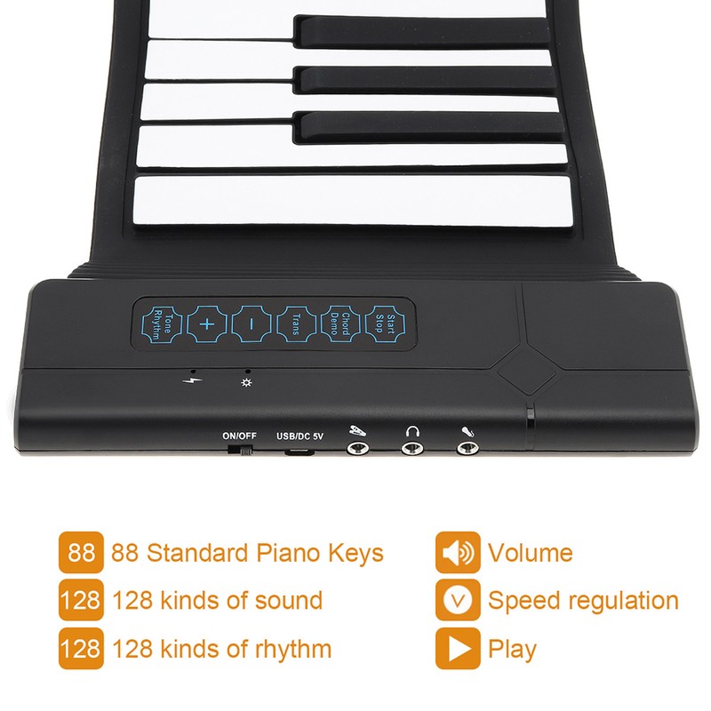 88キーUSBフレキシブル電子ピアノキーボード,ロールアップ,新品