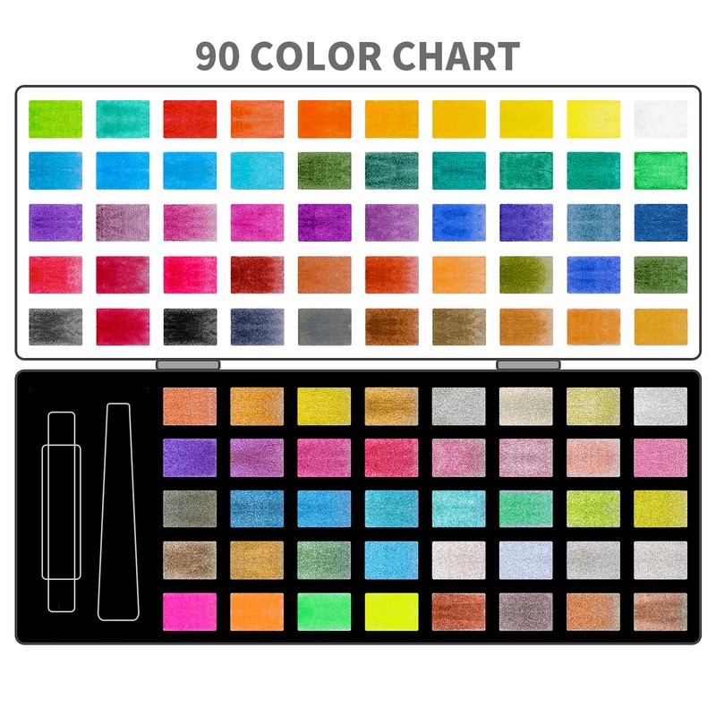 90色のセットには、50のクラシックなレギュラーカラー、36の光沢のある真珠光沢のあるメタリックカラー、4つのハイエンド蛍光カラー、水彩ブラシペンが含まれています