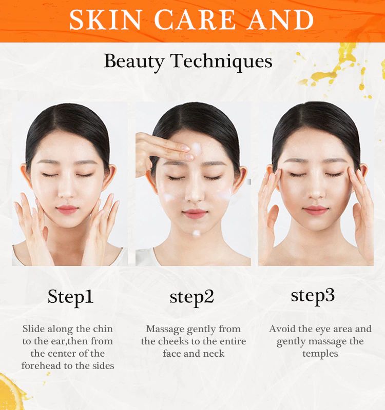 1.昼夜肌をクレンジングした後、顔と首にビタミンCを適切な量で塗布します。