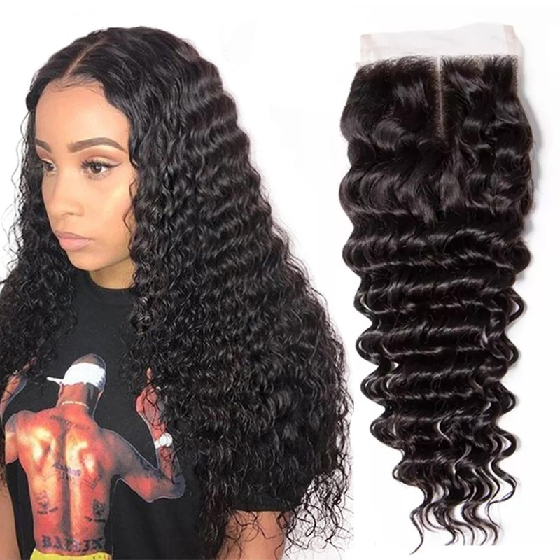 ヘアスタイル4:深い波の人間の髪のレースの閉鎖