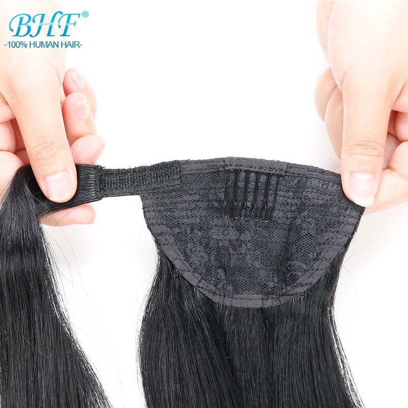 Bhfポニーテールヒューマンヘアマシンレミーストレートヨーロピアンポニーテールヘアスタイル100g 100% ナチュラルヘアホーステールクリップエクステンション