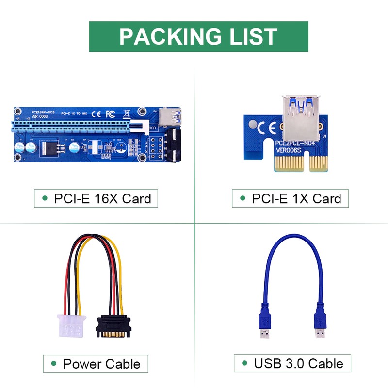 注: 原材料のバッチごとに異なる場合があるため、pci-eライザーカードの外観が少し異なる場合があります (固体コンデンサ、usb 3.0ケーブル、チップモデルなど)。しかし、機能は同じです。 Chipal technologyは、出荷前にすべてのpci-eライザーをテストすることを約束します。