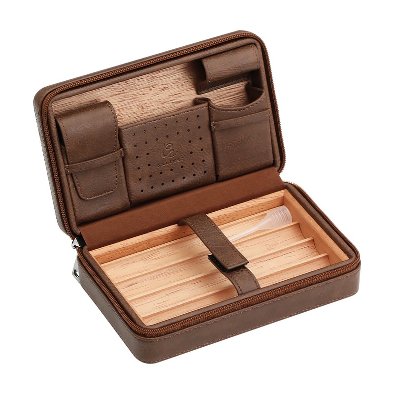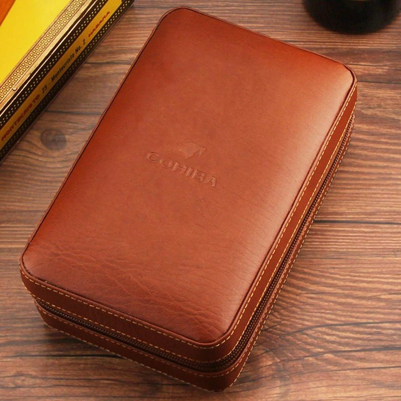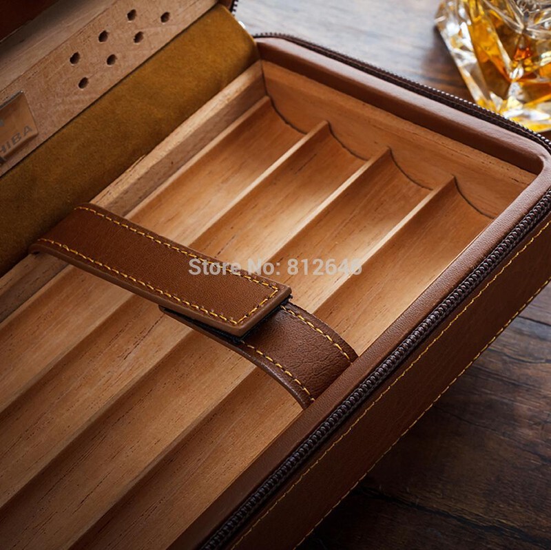 • Cohiba-杉の木と革のポータブルトラベルヒュミドール, 加湿器セット, ギフトボックス (ライターカッターなし)