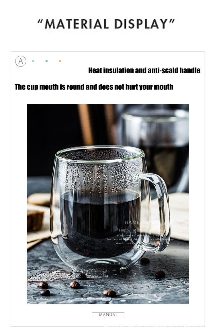 透明ガラスコーヒーカップミルクウィスキーティービール二重創造的耐熱健康と環境保護