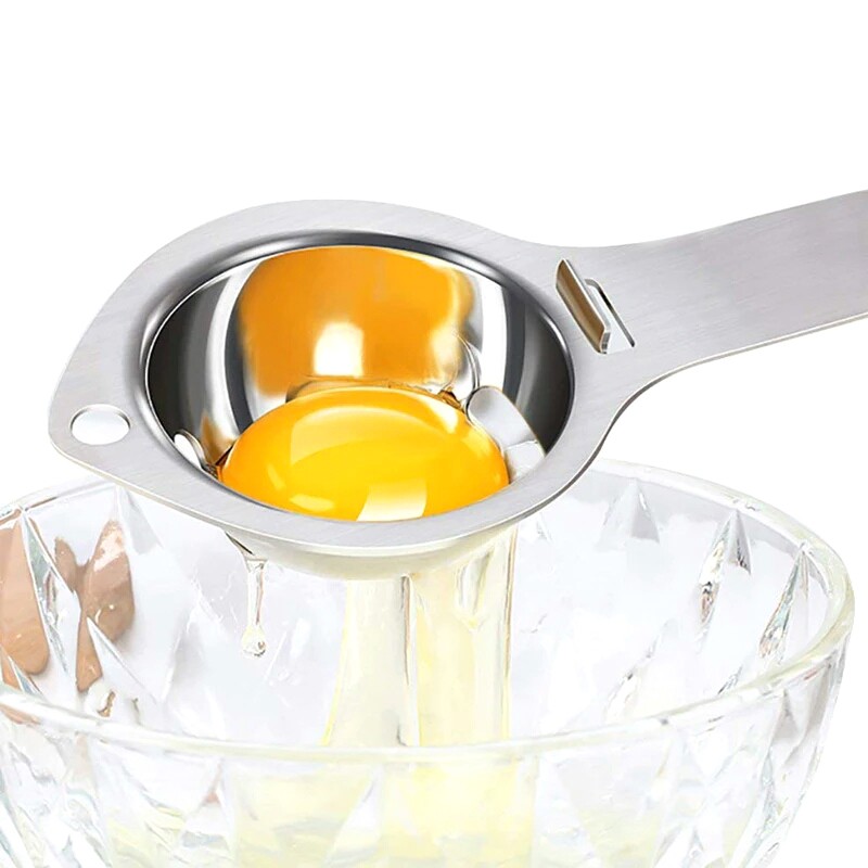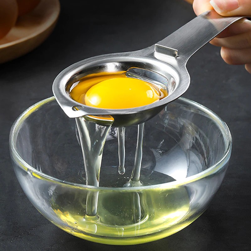 ステンレス鋼の卵分離器,1ピース,長い柄の白い分離フィルター,金属製の卵仕切り,ベーキング,調理器具,キッチンガジェット