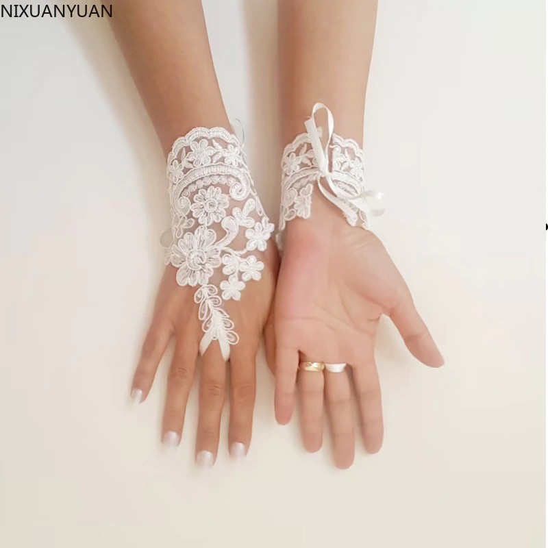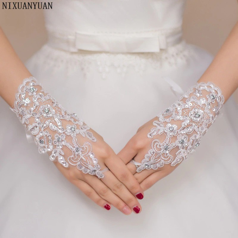 サテンの結婚式の手袋,真珠,レース,短い,指なし,アイボリーの白いアクセサリー