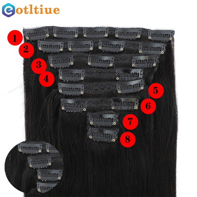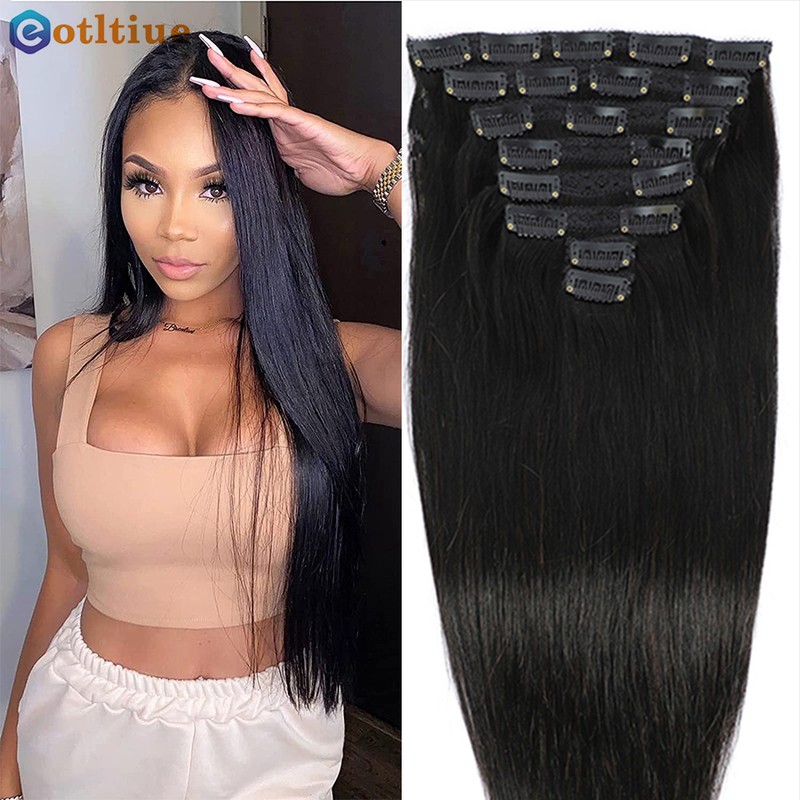 Eotltiueブラジルレミーストレートヘアクリップ人毛エクステンションナチュラルカラー8ピース/セット完全な頭部120グラム黒人女性のための