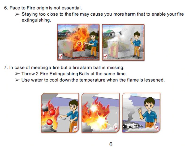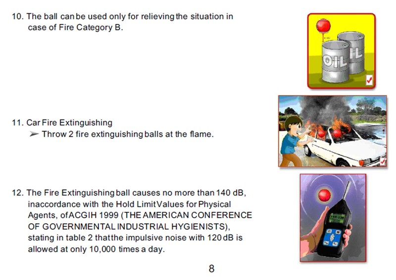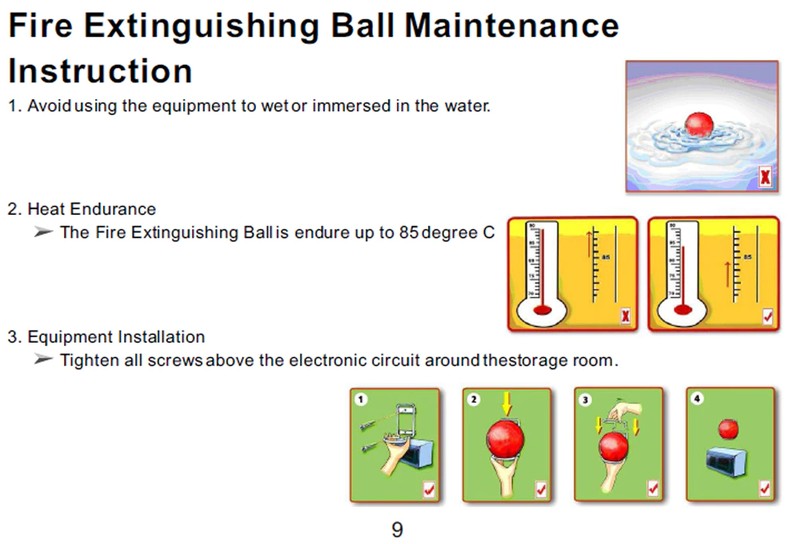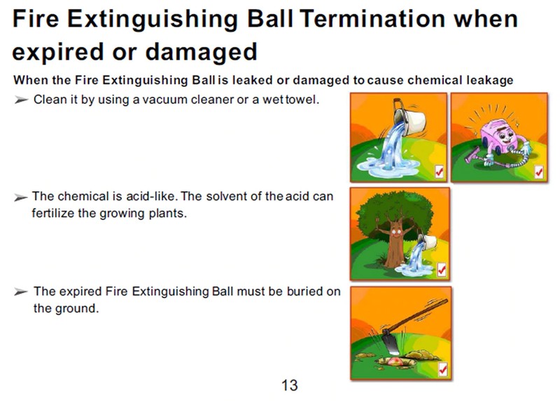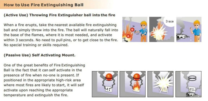 認定、および消火ボールを使用する際のより安全なための追加の提案。