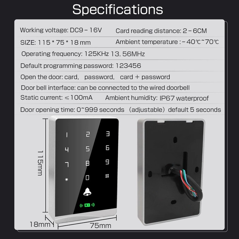 防水タッチスクリーンアクセス制御システム,125KHz 13.56MHz,RFID,スタンドアロン