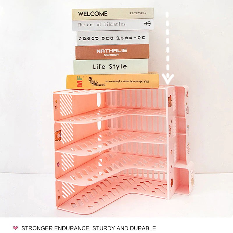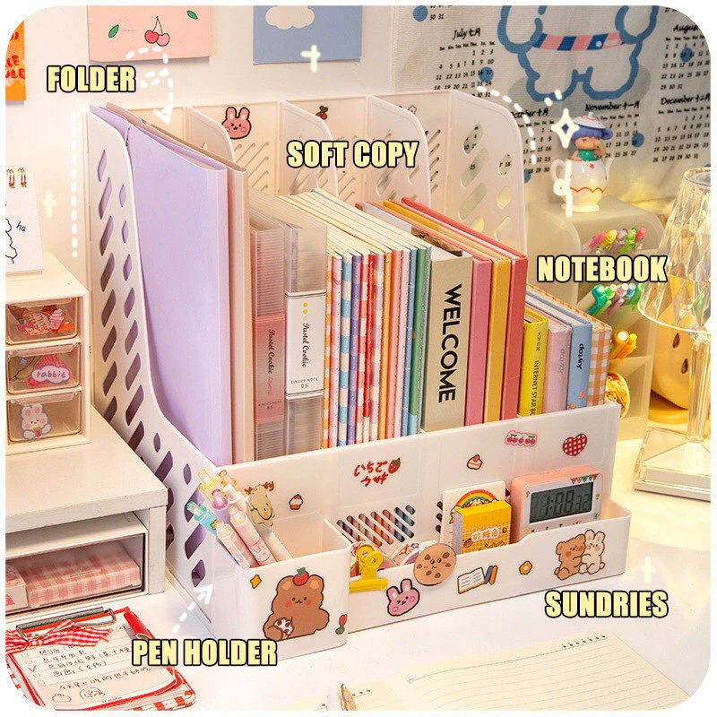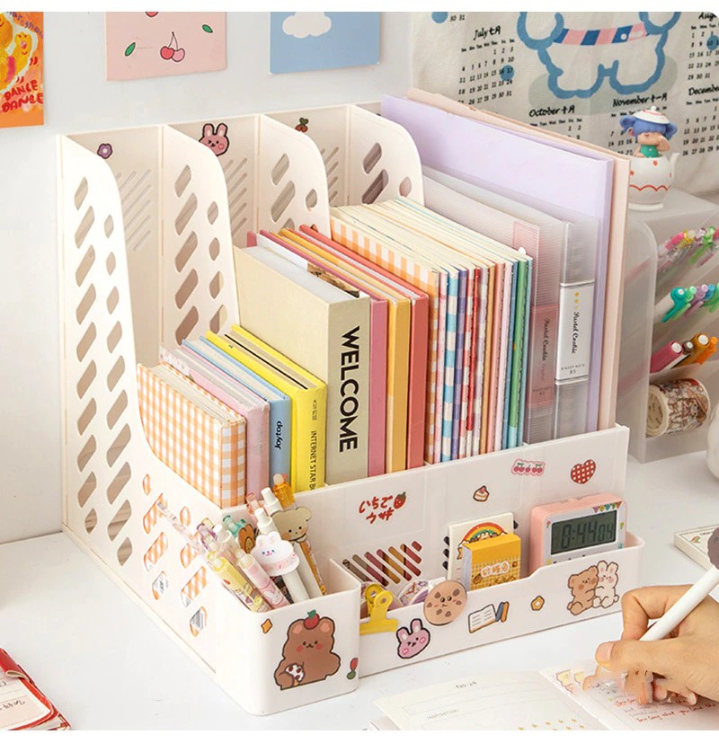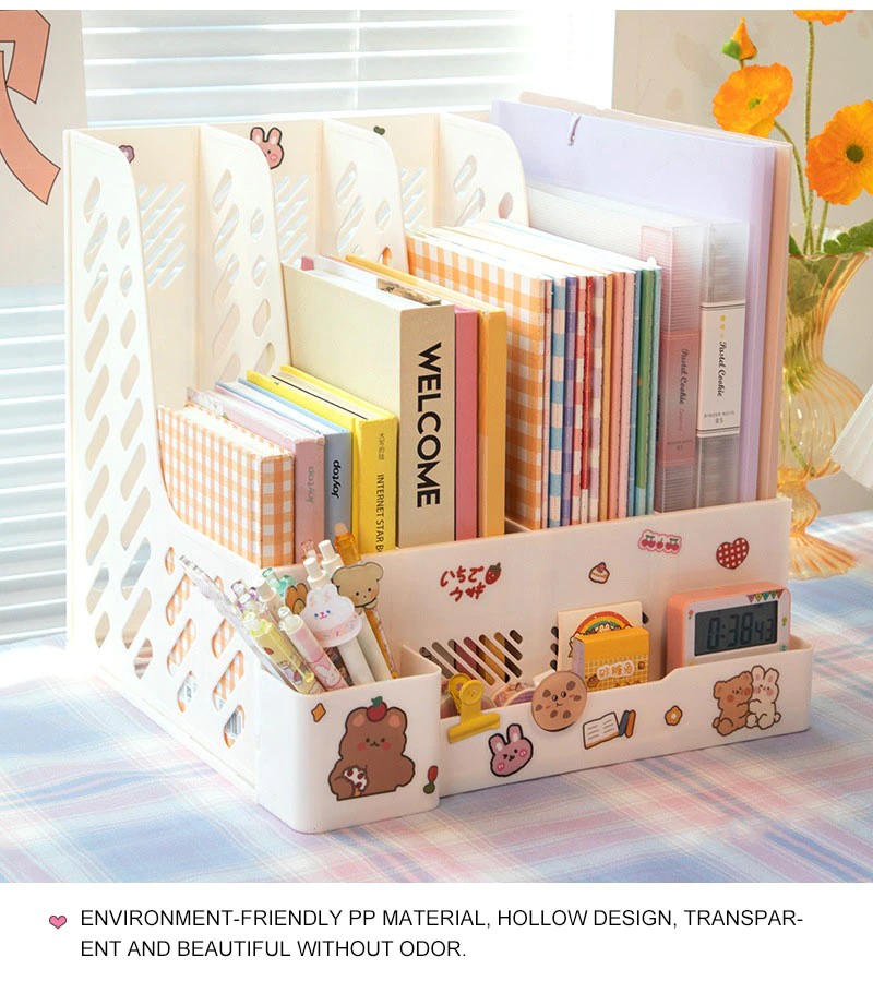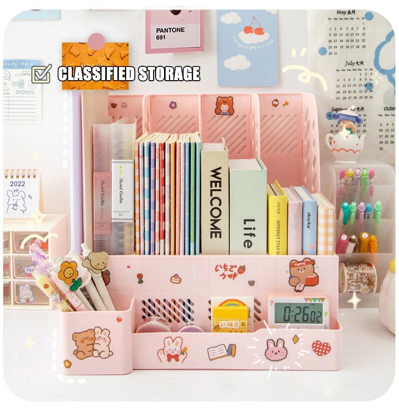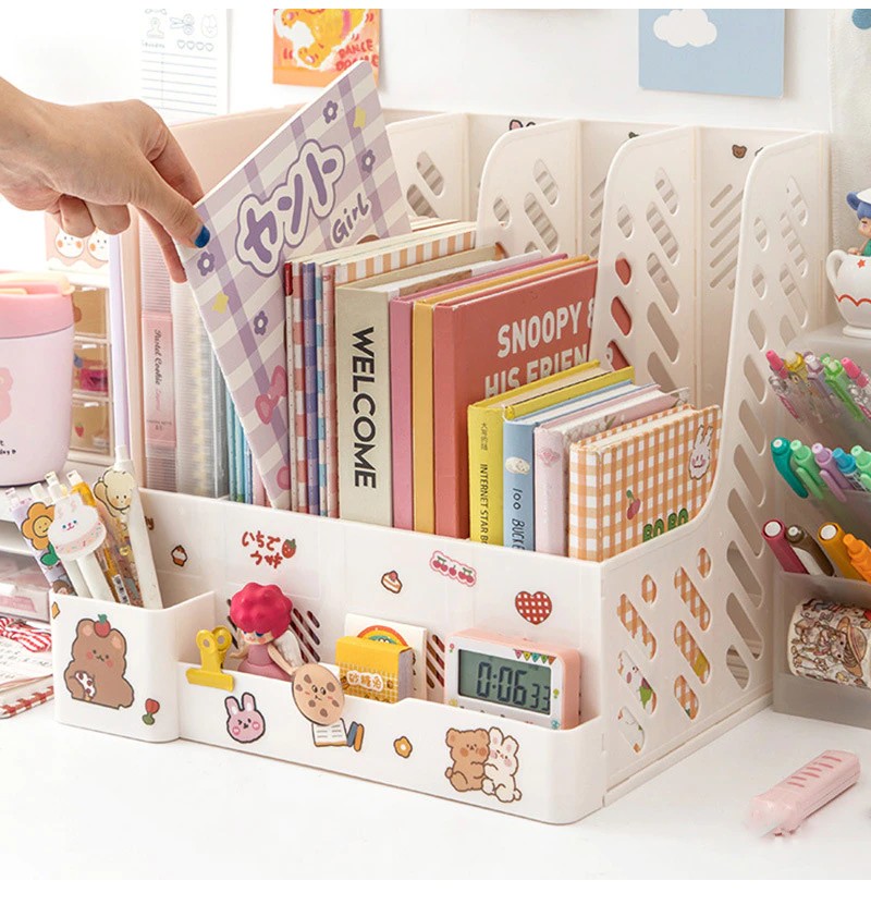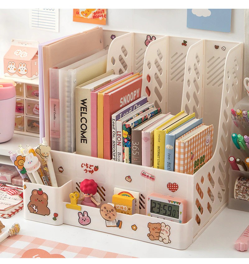 本のスタンド:オーガナイザー、ストレージデスク、カワイイデスクアクセサリー