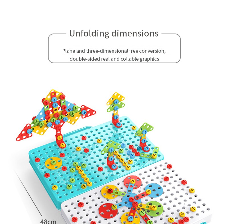 子供はボードにカラフルなネジをドリルして、たくさんのクールなデザインを作ることができます
