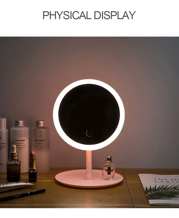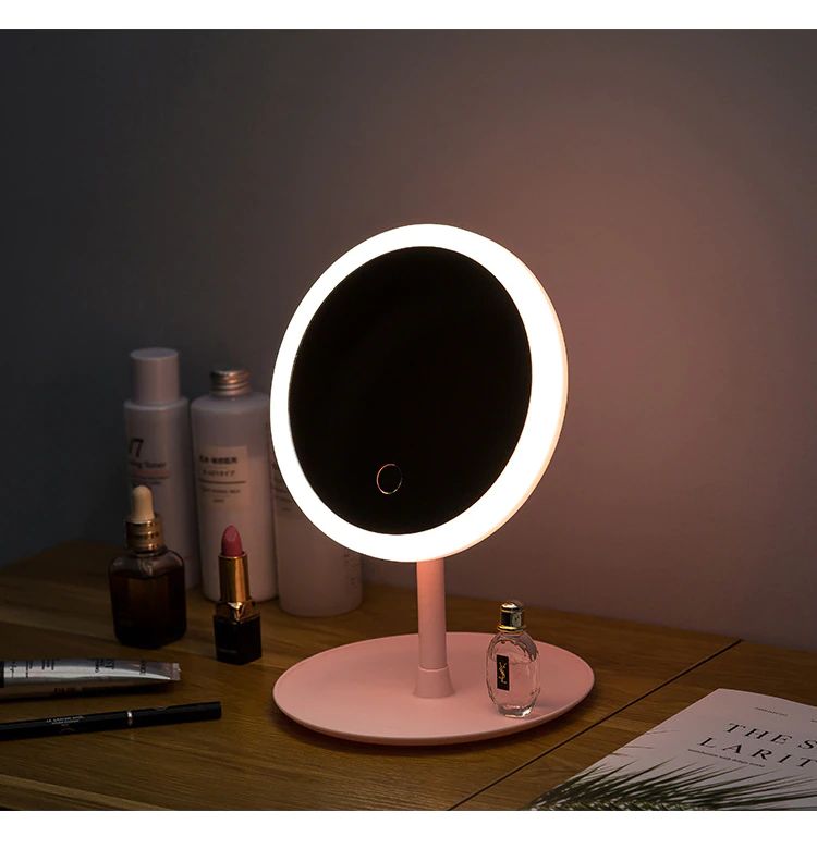 Ledライトメイクアップミラーストレージledフェイスミラー調節可能なタッチディマーusbledバニティミラーテーブルデスク化粧鏡