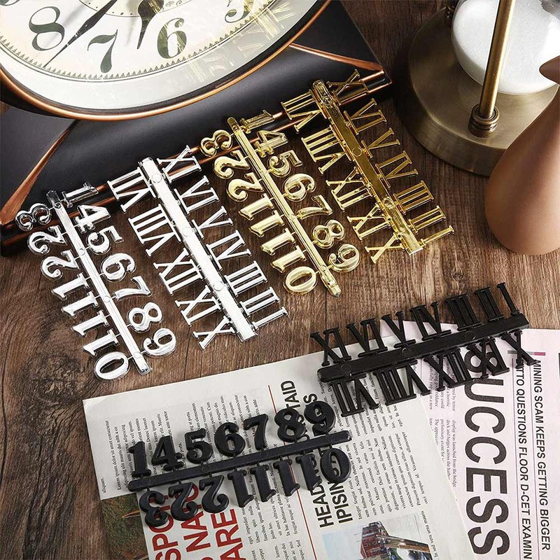 DIY時計番号キットを6個入手できます。 アラビア数字は黒、金、銀で、ローマ数字は黒、金、銀で、好みに合わせて選択することができ、これらの数量は日常のニーズを満たすのに十分です。