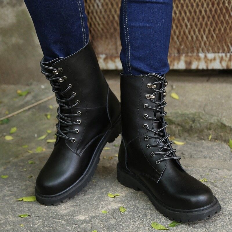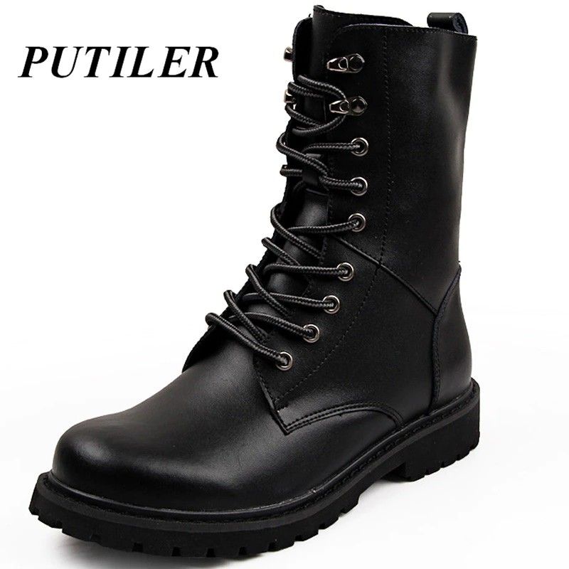 男性の冬のブーツ:ミリタリーアンクルブーツ