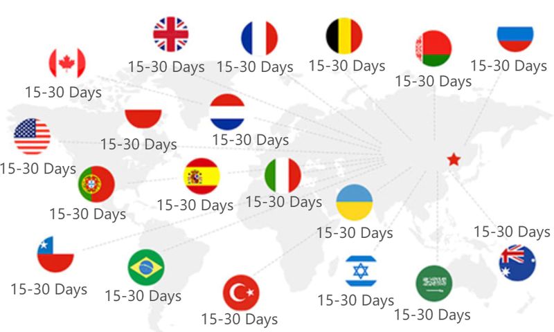 5) サービスの通過時間は通信事業者によって提供され、週末と休日を除外します。 輸送時間は、特にホリデーシーズン中は異なる場合があります。